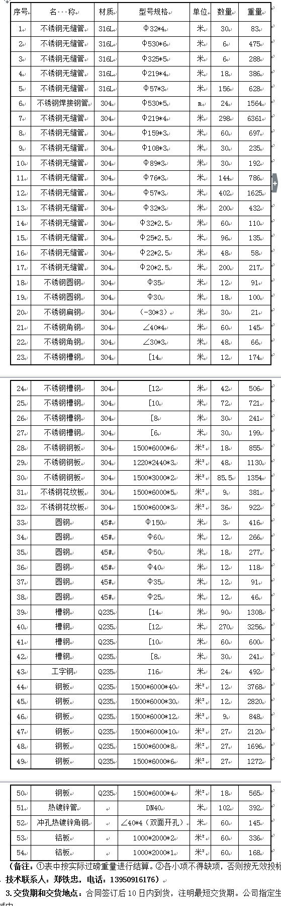 (备注:①表中按实际过磅重量进行结算。②各小项不得缺项,否则按无效投标处理。技术联系人:郑铁忠,电话:13950916176)